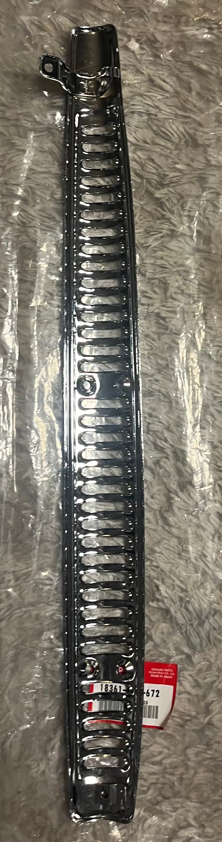 Cache pot d’échappement Honda Dax 100 % d’origine, pièce d’époque extrêmement rare encore dans son sachet Honda avec autocollant officiel.